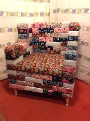 Costruita con legno proveniente da imballaggi usati e vecchie campionature di stoffe per tappezzerie o avanzi sartoriali.