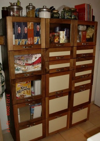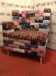 Costruita con legno proveniente da imballaggi usati e vecchie campionature di stoffe per tappezzerie o avanzi sartoriali.