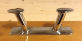 Le bitte utilizzate provengono da una vecchia imbarcazione a vela in disarmo mentre la tavola di compensato marino di mogano su cui sono montate proviene da una paratia interna della stessa imbarcazione portata a vergine e verniciata con coppale marino.