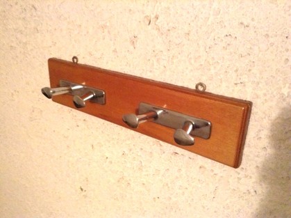 L'Appendiabiti Bitta è costruito con due bitte montate su una tavola di compensato marino di mogano. Le bitte sono dei dispositivi che, a prua o a poppa delle imbarcazioni, permettono di legare i cavi di pormeggio.